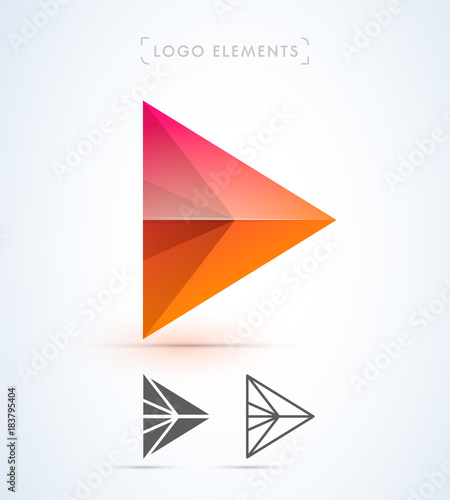 Play button logo template. Vector abstract material design, flat and line style. Origami paper cut shapes