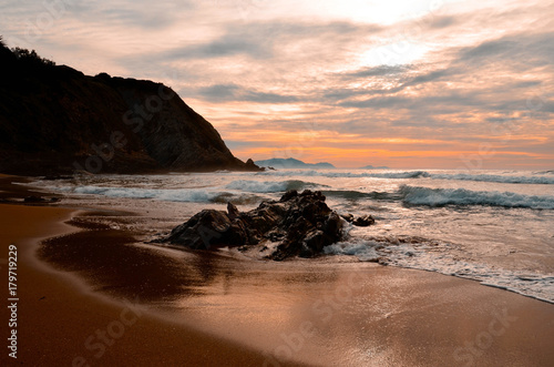 Playa de Sopelana al atardecer, Vizcaya, País vasco, España