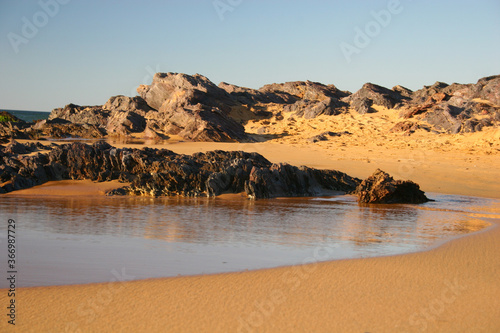 Playas de arena dorada en el Parque Regional de Calblanque, Monte de las Cenizas y Peña del Águila (Cartagena, Murcia, España).