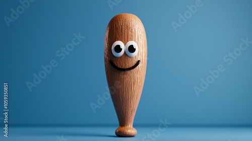 Playful Cartoon Baseball Bat Character with Smiling Face on Blank Canvas