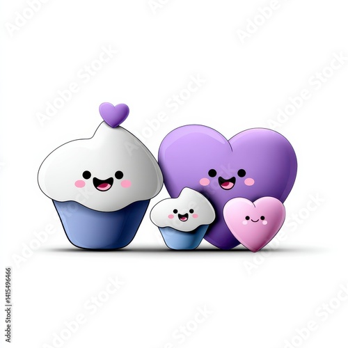 Playful Cartoon Cupcakes and Heart Shapes in Soft Purple and White Colors