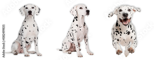 Playful dalmatian dog posing sitting jumping isolated transparent background