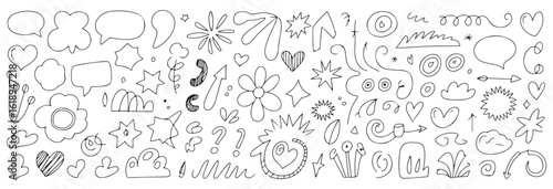 Playful Doodles: A Whimsical Assortment of Hand-Drawn Icons for Creative Designs and Artistic Backgrounds, all in linear simple black and white style.