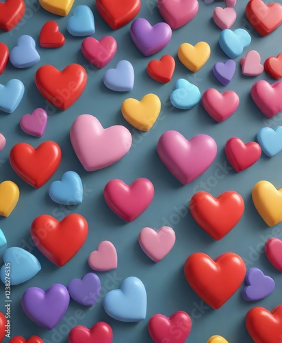 Playful heart shapes in various sizes and colors, playful, texture, fun