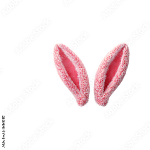 Playful pink bunny ears peeking from a bright white background, fluffy and soft for a whimsical Easter vibe.
