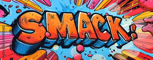Playful pop art background featuring "SMACK." Retro elements, Comic book style, Bright vector