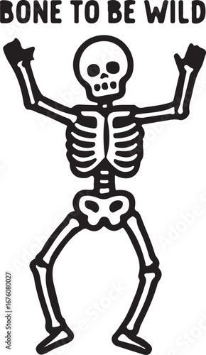 Playful skeleton dancing with "bone to be wild" text a fun graphic for any occasion vector