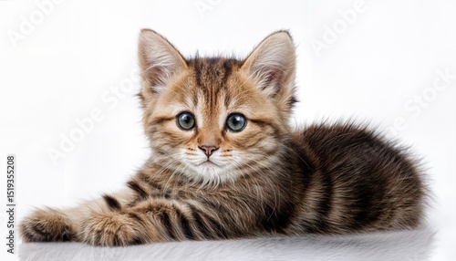 Playful WhiteCoated Kitten Against Minimalist Backdrop, Expressing Innocent Joy and Softness with Sparkling Eyes and Fluffy Fur.