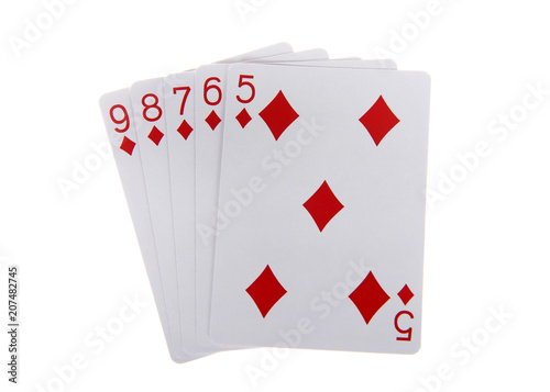 Playing cards, a straight flush. A straight flush is a five card sequence of the same suit. Diamonds