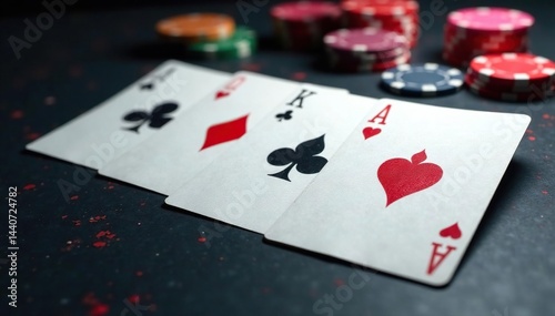 Playing cards arranged in a neat ace high sequence , order, illustration, abstract