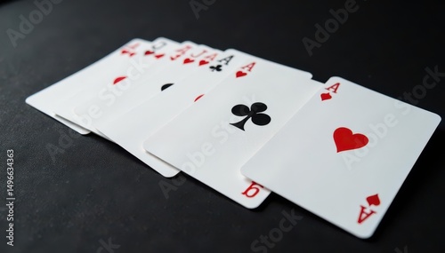 Playing cards arranged in a neat ace sequence , royalty free, hearts, photography
