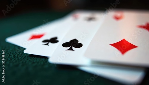 Playing cards arranged in a sequence showing an ace high straight flush , flush, playing cards