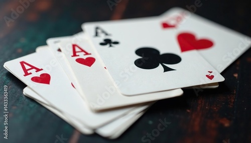 Playing cards arranged in an ace high sequence, lose, aces, graphic
