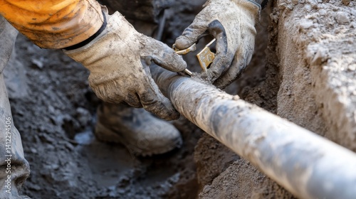 Plumber installing water pipes in a construction building. Featuring technical skill and precision