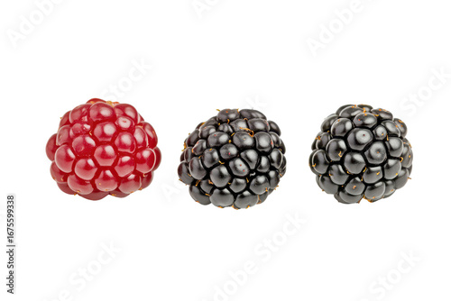 Plump juicy blackberries displayed on a clean white background showcasing their rich color and natural shine