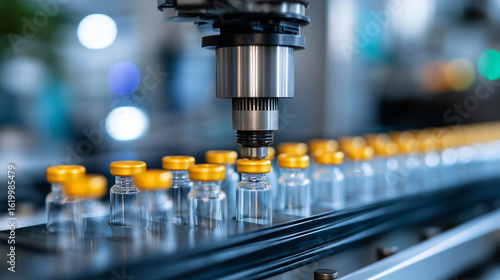 Pneumatic Gripper Placing Plastic Vials on Conveyor System