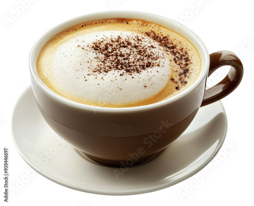 PNG A warm cup of cappuccino with frothy top and cocoa