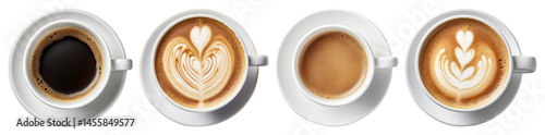 PNG Artistic coffee cups display, element set on transparent background