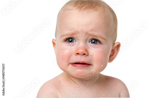 PNG Caucasian infant crying with tears rolling down cheeks against white background