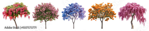 PNG Colorful artistic tree illustrations, element set on transparent background