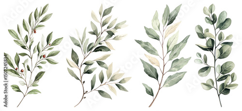 PNG Elegant botanical leaf illustrations, element set on transparent background