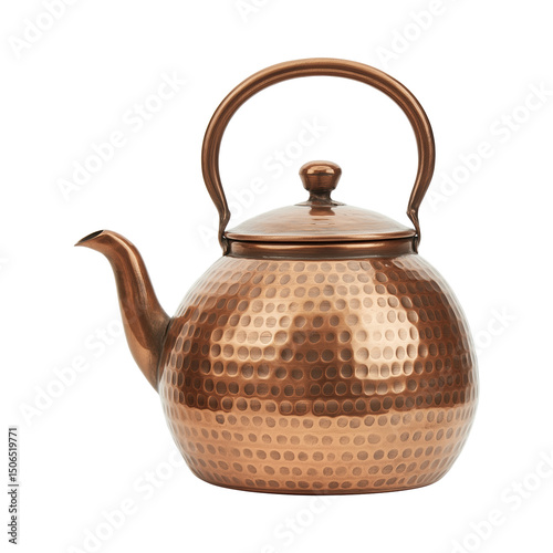 PNG Elegant copper teapot with textured hammered design and curved handle