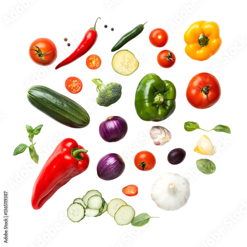 PNG Illustration of a Colorful Assortment of Fresh Fruits and Vegetables: A Burst of Nutritional Value and Vibrancy