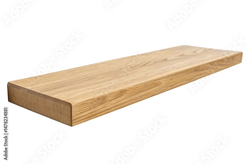 PNG Oak wood shelf on white background: minimalist design and natural finish
