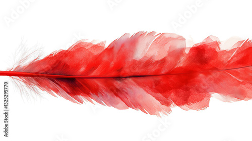 Png of A vibrant red feather with delicate watercolor textures, showcasing elegance and artistic flair on transparent background.
