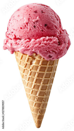 PNG Real strawberry icecream cone dessert waffle frozen.