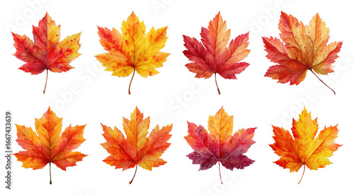 PNG Vibrant autumn maple leaves illustration, element set on transparent background