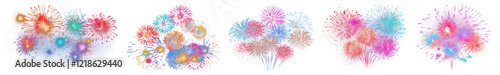 PNG Vibrant colorful fireworks display, isolated element set, transparent background