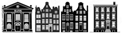 PNG Vintage European architectural silhouettes, element set on transparent background