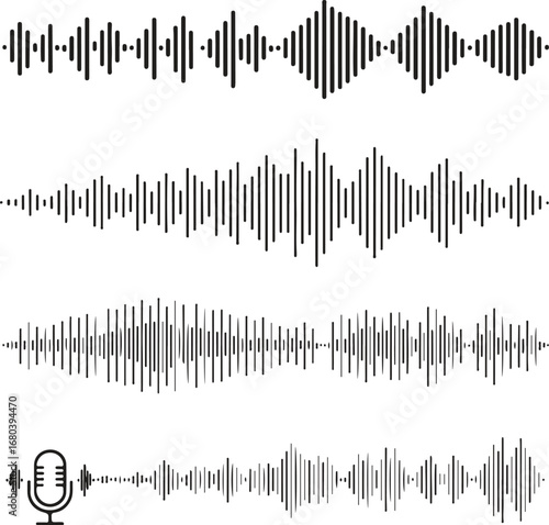 Podcast Sound Wave Icons Audio Waveform Frequency Lines Vector Set