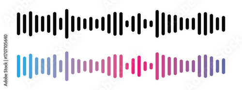Podcast sound wave patterns with gradient waveform for audio broadcasting and streaming. Vibrant frequency bars from yellow through pink to purple display rhythm dynamics for media players in eps 10.