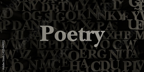 Poetry - Stock image of 3D rendered metallic typeset headline illustration. Can be used for an online banner ad or a print postcard.