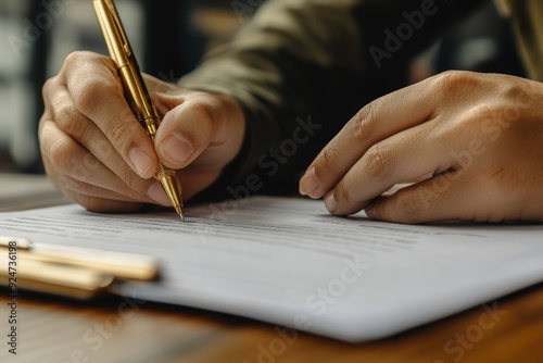 Pointing The Finger In Front Of A Person Signing With Golden Pen On The Document, Generative AI