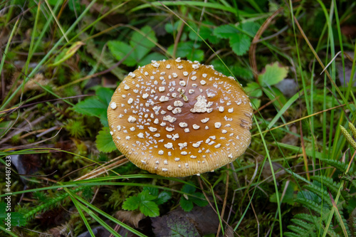 Poisonous mushroom Amanita pantherina. Poisonous mushroom Amanita pantherina in the forest. Causes fatal poisoning.
