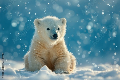 Polar Bear Cub in Winter Wonderland