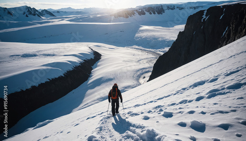 Polar Plateau Unknowns in Snowy Winter: The Adventurer's Passage Surrounded in Landslide