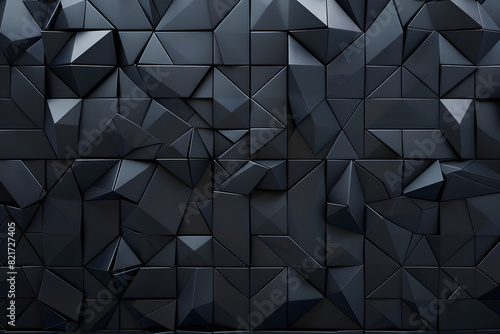 Polished, Semigloss Wall background with tiles. Triangular, tile Wallpaper with 3D, Black blocks. 3D Render AI