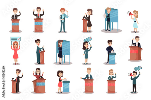 Political Candidates and People Taking Part in Voting and Election Vector Illustration Set