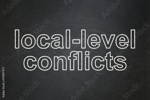 Political concept: text Local-level Conflicts on Black chalkboard background