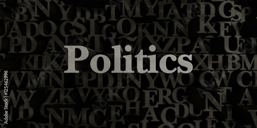 Politics - Stock image of 3D rendered metallic typeset headline illustration. Can be used for an online banner ad or a print postcard.