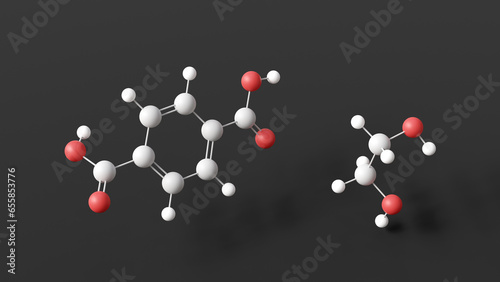 polyethylene terephthalate molecule, molecular structure, pet, ball and stick 3d model, structural chemical formula with colored atoms