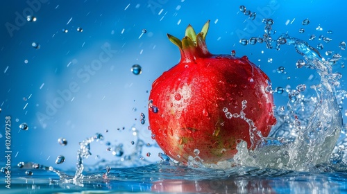 Pomegranate and water splash. captured with highspeed photography as they break through the waters surface.