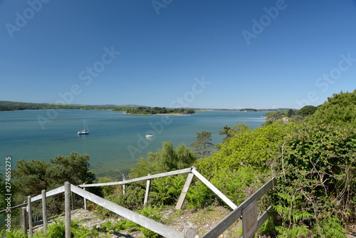 Poole harbour view from shore of Brownsea Island in Poole harbour, Dorset coast