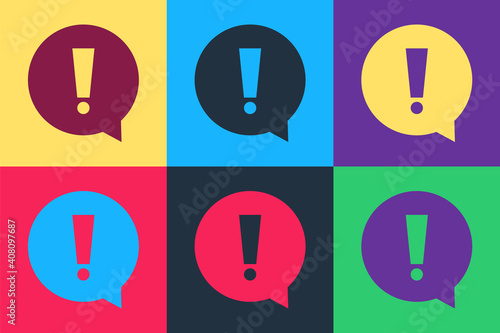 Pop art Exclamation mark in circle icon isolated on color background. Hazard warning symbol. Vector.