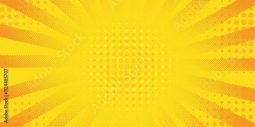Pop art yellow comic book cartoon magazine cover. Cartoon cute retro Strip pattern mock up. Vector halftone illustration. Vintage background for comic superhero text, speech bubble, message.
