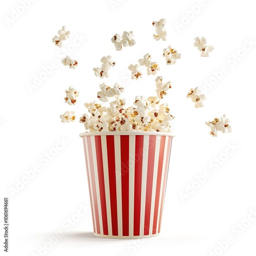 Popcorn bucket with popcorn taking flying, Isolated on white Background